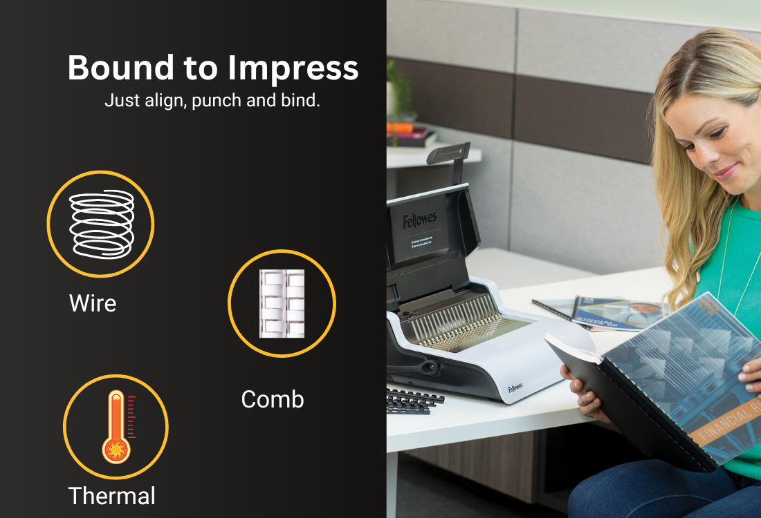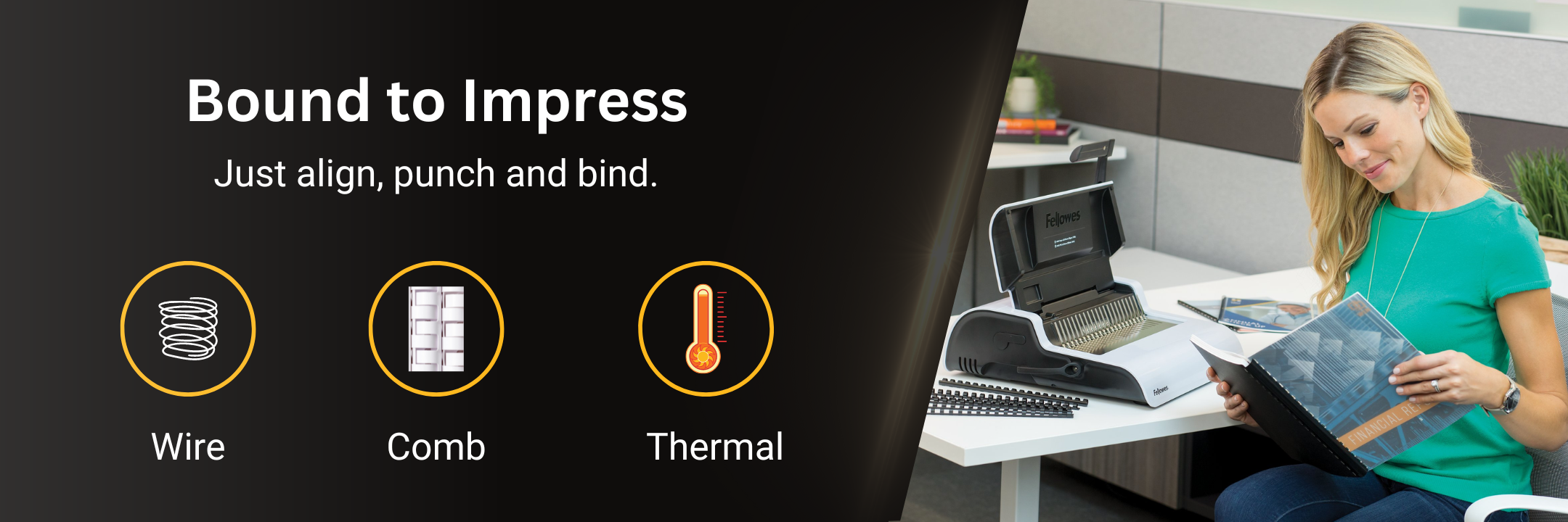 Fellowes Provides a rich variety of binding solutions including wire, comb, and thermal binding machines, alongside an impressive selection of roll and pouch laminators. But that's not all - we also offer a comprehensive range of supplies and accessories to complement both your binding and laminating needs. Dive into our carefully curated collection and discover the perfect Fellowes products to enhance your projects, all showcased alongside vivid imagery to guide your selection.